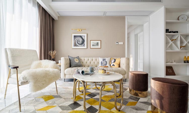 房主為一對新婚小夫妻,總體要求就是,要美,要溫馨,預(yù)算要省。溫馨的鵝黃乳膠漆配以圓潤的拱形門框,外加小碎花布藝沙發(fā)。