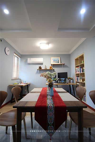 書房與餐廳互通,既滿足了平時(shí)忻先生的日常辦公又提升了空間的使用頻率。經(jīng)典的及木家具風(fēng)搭配獨(dú)特的配飾、宛如藝術(shù)心靈的沖撞,一切是那樣舒緩、給人沉迷家的感覺(jué)。