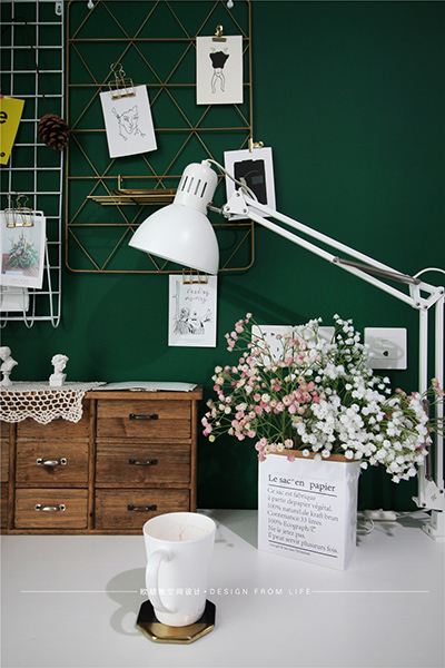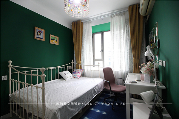 臥室粉色和墨綠色的裝扮,理性而又靜謐,比極簡(jiǎn)多了一份溫度,比美式多了一份質(zhì)樸。