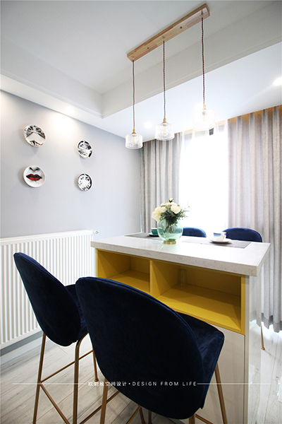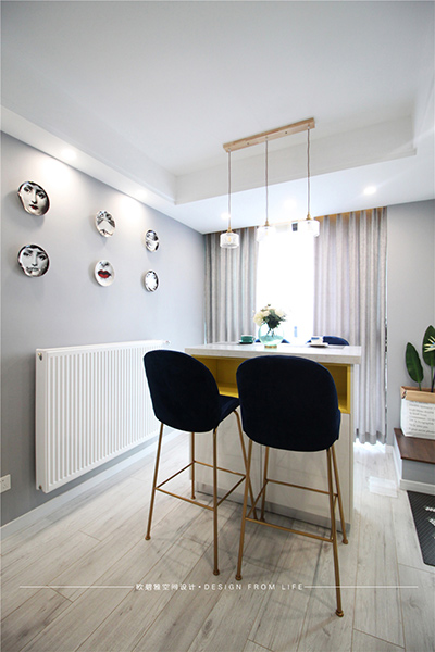 餐廳灰色的墻體和精美的餐椅與客廳相互呼應(yīng),體現(xiàn)生活的美感!同時(shí),個(gè)性化的吊燈設(shè)計(jì)和墻面上的藝術(shù)裝飾,為整個(gè)餐廳添加了區(qū)域的設(shè)計(jì)感。那一抹黃色的設(shè)計(jì),讓身處其間的可愛(ài)人兒感受到熱情與溫暖,這才是生活應(yīng)有的樣子。