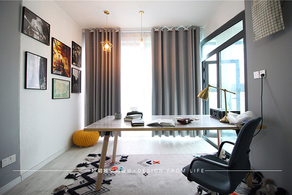 設(shè)計(jì)師和業(yè)主聯(lián)手創(chuàng)意,把陽(yáng)臺(tái)利用起來(lái)裝成小書(shū)房,在簡(jiǎn)約極致的基礎(chǔ)上,融入暖心舒適的色彩,讓生活賦予了生活更加豐實(shí)的味道!設(shè)計(jì)師在北歐風(fēng)格書(shū)房設(shè)計(jì)中增添許多的隨性的氣氛,質(zhì)樸的小家具,原木電腦桌、素雅的地毯、黃色的手工墩,不論是款式還是造型都極其簡(jiǎn)單,在這一方天地,一本好書(shū)或一首美妙的音樂(lè)都可以帶你進(jìn)入另一個(gè)環(huán)境,無(wú)論在工作上、或者日常生活瑣事中所承受的所有壓力都會(huì)消失不見(jiàn),隨時(shí)享受生活的寧?kù)o,忘記壓力,享受放松。在這慵懶的夏日,我只想躺在這里,享受寧夏時(shí)光。